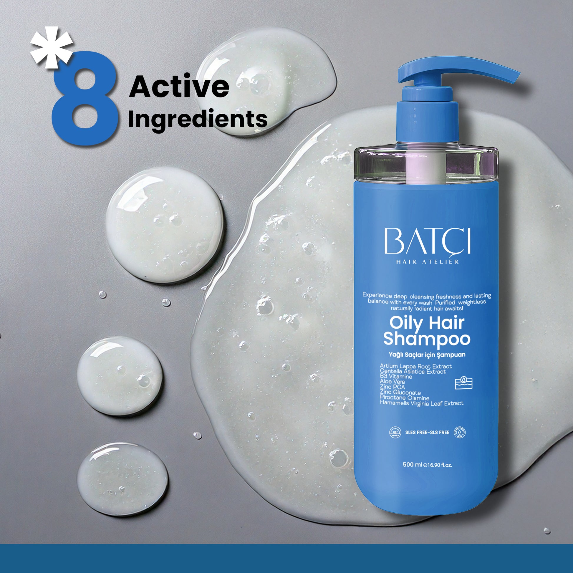Conheça o Shampoo Equilibrante Anti-Oleosidade BATCI! Este shampoo ajuda a equilibrar o excesso de oleosidade no couro cabeludo e proporciona um aspecto fresco e volumoso por mais tempo. Sua fórmula, enriquecida com oito ingredientes ativos, nutre os cabelos e o couro cabeludo, mantém seu equilíbrio natural e protege contra fatores externos. Suas propriedades de controle da oleosidade ajudam a manter os cabelos com aparência saudável, forte e brilhante. Este shampoo leve é adequado para uso diário, promove a saúde do couro cabeludo e protege os cabelos da oleosidade ao longo do dia.